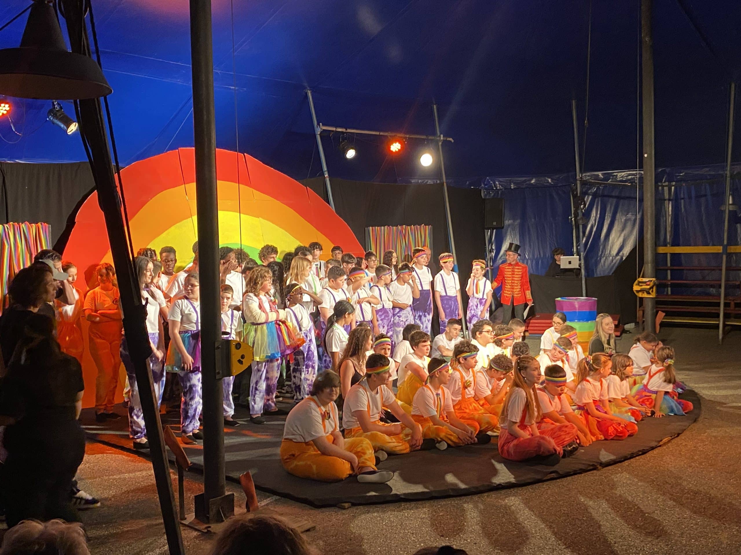 Chaque classe a préparé un numéro unique pour émerveiller le public dans le spectacle intitulé « Mais où est passé le bleu ? » Une équipe d’aventuriers est également intervenue  entre les numéros pour assurer la partie narrative du spectacle.
